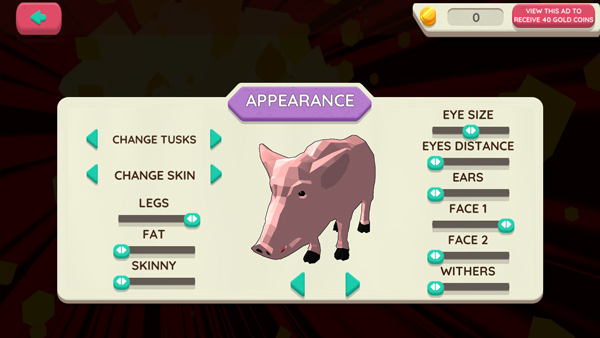 - 根据需要自定义猪。选择皮肤、象牙、鼻子参数。