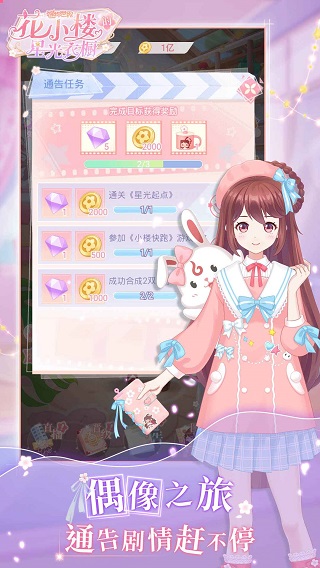 偶像的第一要务,就是打扮的美美哒!现在开始,先来购买一件漂亮的衣服为花小楼穿上,具体的操作方面,可在主界面点击“合成”,然后通过“购买部件”来实现相同服装的合成,每两件相同的服装可以合成出更高级的服装部件。接着拖动部件到花小楼的身上即可。