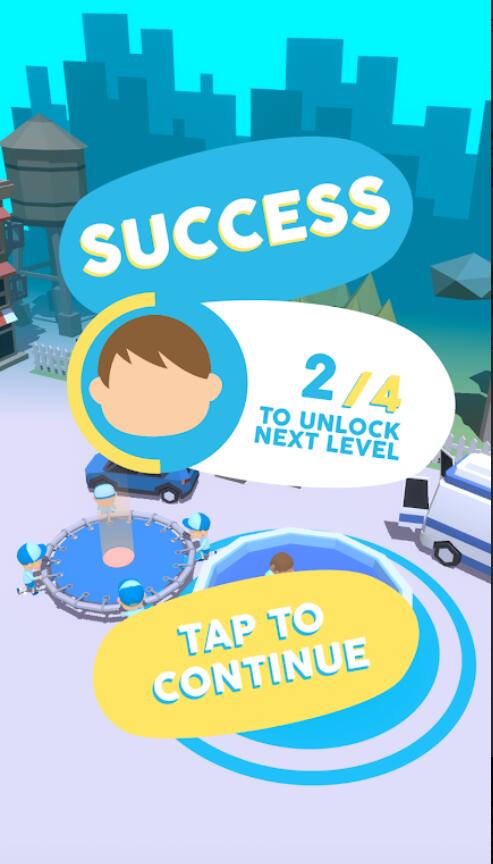 掌握游戏技巧,移动蹦床,把握好时机,抓住所有居民。