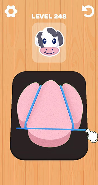 1、打开海绵艺术最新版,进入游戏主界面,根据上方图案的样子,用手指滑动海绵,来改变形状,