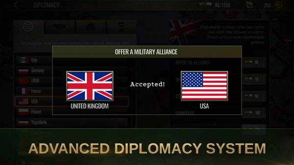5、一个深刻的战略组成部分:如果您是英国人,就可以轻松赢得第二次世界大战,但请尝试以葡萄牙或奥地利人的身份取得胜利!集结您所有的战略天才来评估风险,并通过外交、科学和经济来补充军队的实力,以实现霸主地位。