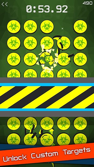 击碎你的目标!超过50个关卡!争分夺秒地展示你的技能,并登上排行榜的榜首。击中了错误的目标,你会被扣掉时间,所以准确性和速度一样重要。从奖励阶段收集硬币并解锁新的定制目标。