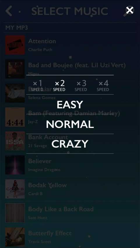 5、只需要根据歌曲的难易程度来决定玩家想要体验哪种模式。