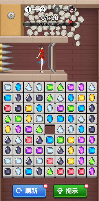 根本消不完在抖音小游戏中脱颖而出,采用经典的消除合成玩法,十分烧脑,游戏画风采用精美的卡通风格,提供的有大量的关卡和消除内容等着你去挑战,玩法简单,你只点击相同的颜色的宝石完成消除任务,不让小人头上的石头掉落即可。