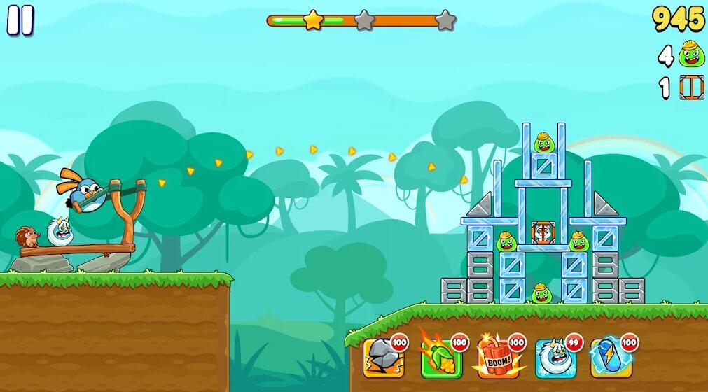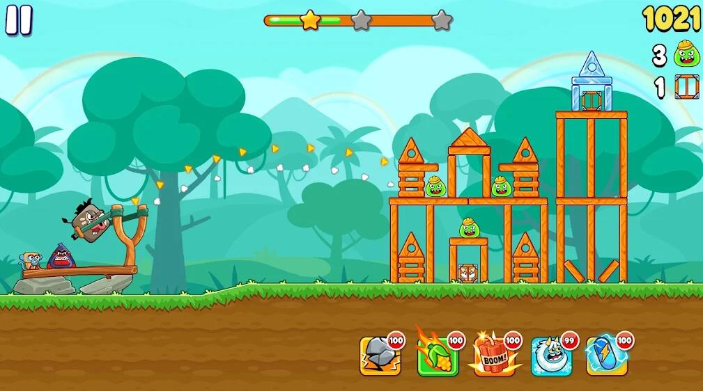 许多各具特色的动物都可以放在弹弓上,用策略打败敌人!
