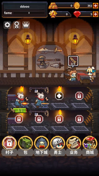 英雄的铁匠中文版是一款非常休闲有趣的RPG像素冒险手游,英文名称叫做Warriors' Market Mayhem,该游戏采用经典的像素风格打造,游戏主打装备锻造为核心,又加入了英雄招募、养成和战斗等多元化要素内容,从而让游戏不乏那么的单调,更加的充实有趣。英雄的铁匠中你目标就是尽可能满足客人的需求,派遣勇士出征获取装备锻造的材料,另外游戏还有还有地下城、周目业务完成、柜台装饰等新派玩法加入其中,力图带给你更加休闲有趣的RPG游戏体验。