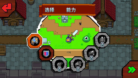 基本上所有关卡中出现的东西都可以破坏。小到草墩,木箱;大到大树,房屋。破坏后随机可以得到道具,金币,加血,让骑士旋转加快的狂暴药剂等等。关卡中随机路过的道具商人也可以用获取的金币购买道具。死亡可以通过金币复活,每次金额不断叠加直到你付不起价格。