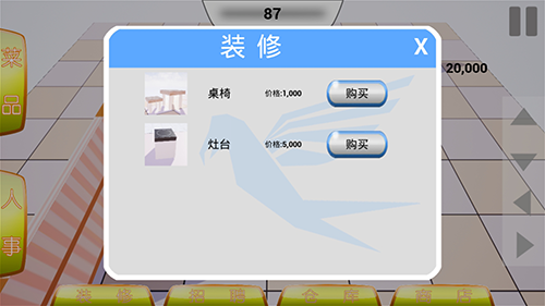 3.自主运营管理餐厅赚取收益,没有其他过多的提示和协助,比较检测本身的运营才能。