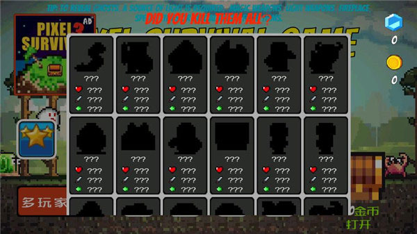 5、每局过后,系统会奖励些金币,玩家可以在首页开箱子获取装备,另外玩家击杀过的怪物可以点击首页的星星查看他们的属性。