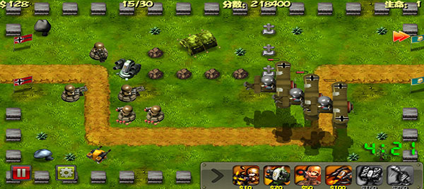 而作为玩家的你进入游戏后将会扮演二战时期的指挥官,你所在的城市即将被敌人攻破,而你临危受命,接下了指挥官这一大任,只有完成15关的防御,通关不断建造升级防御抵挡敌人的攻势,让自己成为一名伟大的指挥官,整个的过程挑战性十足,让你玩过之后便会对其上瘾。