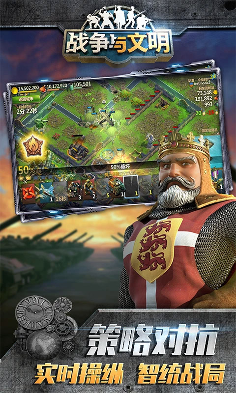 战争与文明腾讯版是融合《文明》、《国家的崛起》和《帝国时代》系列玩法的一款策略手游,支持用户用qq一键登入游戏,登录即可领取大量的福利礼包。这款游戏在玩法上引入了文明系列的时代概念并继承了奇迹建筑等文明元素,游戏中共有八中文明可供玩家选这,每种文明都具有不同的特色,并且这些文明又是围绕着攻击、防御和资源发展展开,当玩家发展到中世纪时代,玩家还可以进行文明的更换。其中选择华夏文明可以增加市民和佣兵的上限还可以获得额外的卫兵奖励用于防御,固有部队为耳熟能详的诸葛弩兵,攻击、防御、资源发展都有所特长,算是比较全能的文明,也是国人首选的文明,感兴趣的小伙伴快来体验一下吧。