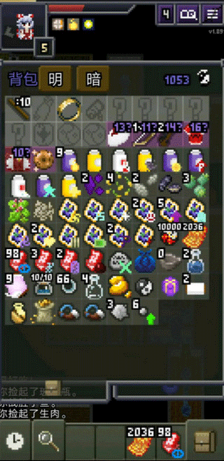 4、背包里有着你捡起的大量物品