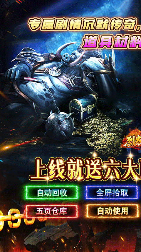 1、登录免费送六大BUFF福利:自动回收,全屏拾取,自动使用,自动经验,三页背包,五页仓库!