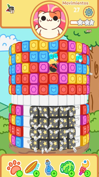 2、根据不同关卡的要求完成不同的挑战,匹配积木并消除它们,获得三星完美通关;