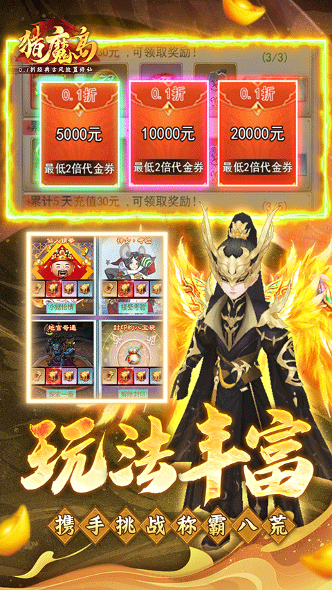 另外,猎魔岛游戏的玩法十分丰富,拥有世界boss、关卡挑战等等,这些玩家都十分有特色,玩家可以通过这些关卡让自己变得更强,从而早日登临修仙之巅。