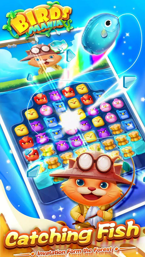 1、游戏玩法和其他三消游戏差不多,三个同样颜色的小鸟即可消除,而4-5个及以上则可组合成不同的消除道具;