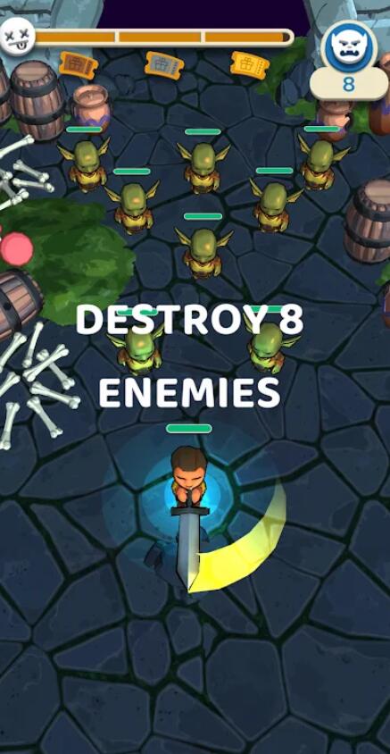 1. 你的英雄旋转、旋转、旋转,将他穿过地牢,并用他的超大剑粉碎他周围的敌人。