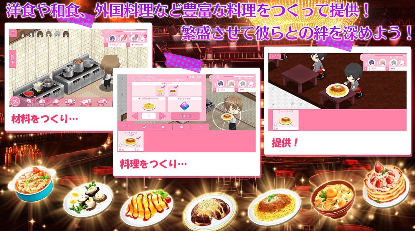 游戏分为两种玩法,一种是经营玩法的“Cooking”,另一种是恋爱的“Dance”,准备料理的同时也可以和装扮店子和同事谈恋爱。该作于今日正式登陆iOS/Android,你真的不来这里上班吗?