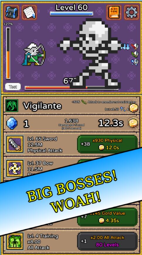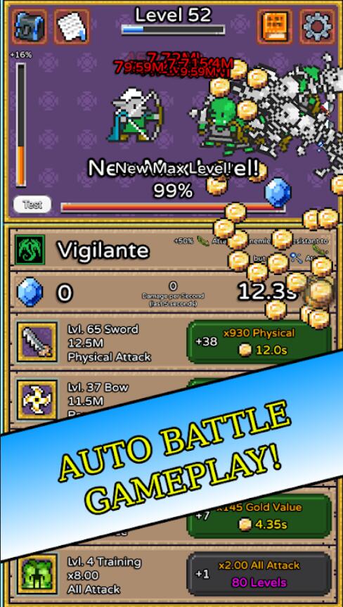 超有趣的像素游戏,玩家可以轻松体验冒险的乐趣,竖屏的玩法让玩家的游戏体验更加舒适,让玩家拥有放置式的游戏体验。玩家可以解放双手。