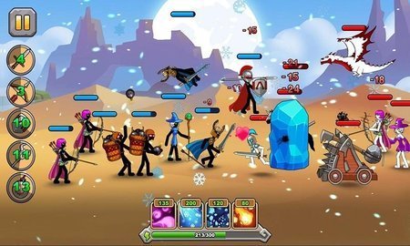 2.在正确的时间释放正确的魔法来赢得战斗。游戏包含15个可以解锁的法术。您可以匹配 17 支军队和武器。