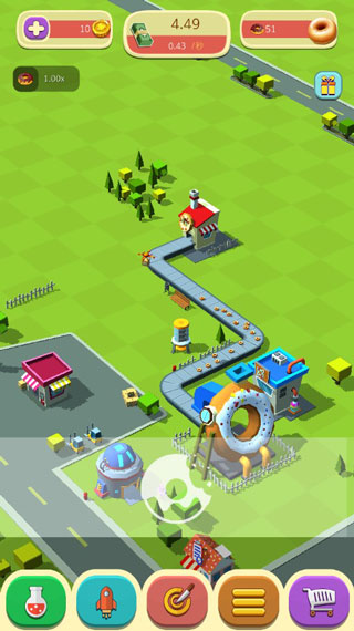 甜甜圈工厂中以经营一家提供甜甜圈制作,销售于一体的工厂为目标主旨,通过研究、升级和调整工厂的规模,增加甜甜圈甜蜜值的和产量来促进收益的增长,另外,研发新的甜甜圈虽然会让产业重置,但其经济利益会得以大幅度提升,可谓是有利有弊,非常的适用于大家无聊时消磨时间。