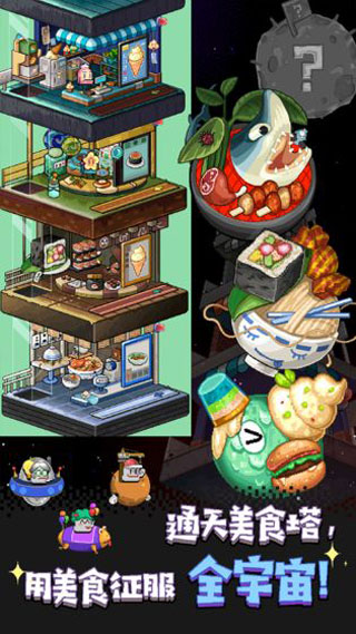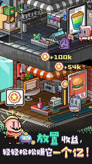 狂点大作战是一款像素风的模拟经营类手游,同时也是一款放置类游戏,在该游戏中玩家将以波比的身份,并联合辅助神明的指导,前往不同的外太空星球中建设新的餐厅,通过对餐厅的模拟打造,让其成为该星球独一无二的存在,并且利用在该星球的地基,招募不同等级的店长来管理你的餐厅,风格多样,类型各一的外太空店长会有不同的技能,合理分配每个店长进入餐厅管理,充分发挥特长,继而将餐厅建设的更加完美。