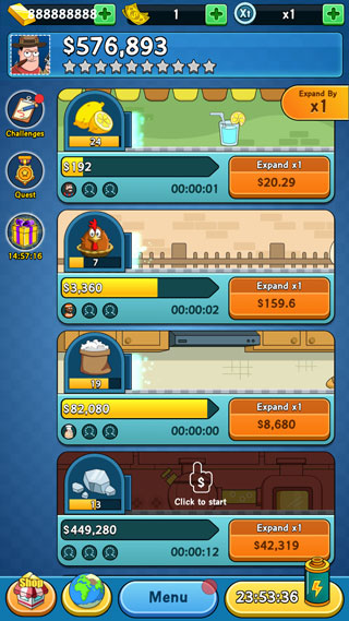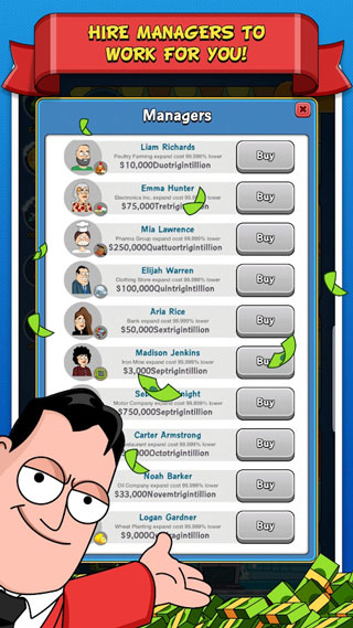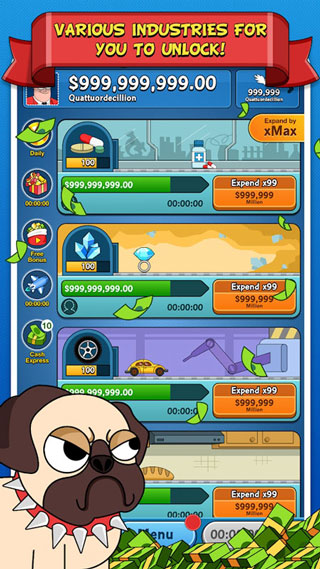 1、在这个游戏中,你唯一需要做的就是点击,点击,点击,然后看着你的资本快速增长,扩大业务,成为世界上最伟大的资本家2、从最基本的产品-小麦开始你的全世界垄断产业。你可以通过点击产生更多的小麦来积累资本,并通过投资其他行业扩大资本