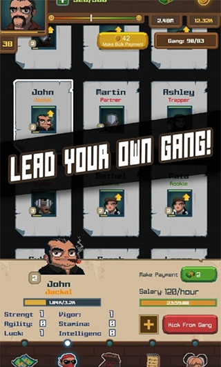 帮派模拟是一款非常有趣的模拟养成类手游,采用了复古的像素风格画面,融入了各种格斗、冒险、模拟等元素,拥有简单轻松的游戏玩法,能给玩家十分有趣的体验。游戏中玩家将从一位无名小卒开始,你需要建立发展帮派的势力,用自己的双头打下江山,经营自己的生意,执行各种危险的任务,体验全新的现代帮派的生存之道,玩起来非常的放松,一种新的街头战法,与敌对帮派势力就地盘领土展开激烈的较量,这不单单要靠武力,还要在各种领域都要压过自己的对手。游戏中玩家可以驾驶坦克,飞机等,以此去化解你的危险,放大你的激情。另外,帮派模拟游戏玩法非常的自由,你想干什么都行,在这里你有一种当给黑帮大佬的感觉,觉得会让你们有一种天外飞仙的乐趣,从此以后再也不会有人对你指手画脚了,而且看到谁不爽直接让小弟把对方给胖揍一顿,只要不涉及到违法犯罪之事基本上问题就不会很大了。