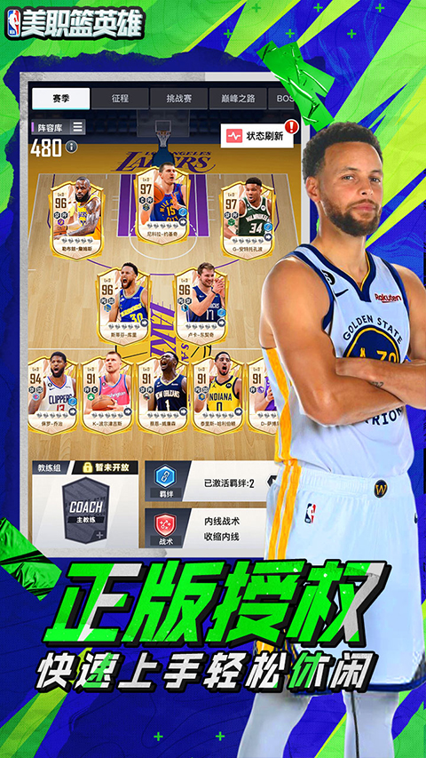 美职篮英雄官方版是一款经过官方正版授权的NBA模拟球队运营游戏。在该游戏里面玩家将扮演一位优秀的NBA经理,经过你明锐的眼睛来挑选适合的球员,根据球员的特长来进行合理搭配,自由分配出场的时间和战术风格,从而帮助你的球队一次次获得胜利,最后打造一支属于你的专属王者之师。除此之外,优秀内还有着丰富福利活动等你来参加,玩家可以依此来获得大量奖励,从而更好招募自己想要的球员。同时,游戏内还提供私人定制功能,玩家来打造属于你的专属游戏。感兴趣的小伙伴快来本站免费下载游玩体验一下。