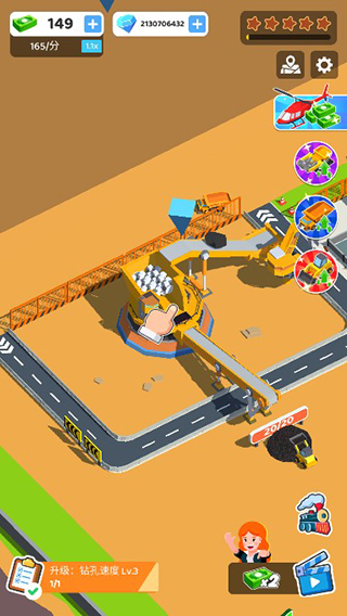 1、解锁并升级新的建筑、车辆和机器,以扩展您的生产线。磨刀不误砍柴工,好的设备,才是生产力之王。2、解锁新地图、煤矿开采形式并获得巨额财富。在蓬勃发展的商业进程中,充分利用对钻石和黄金的需求。
