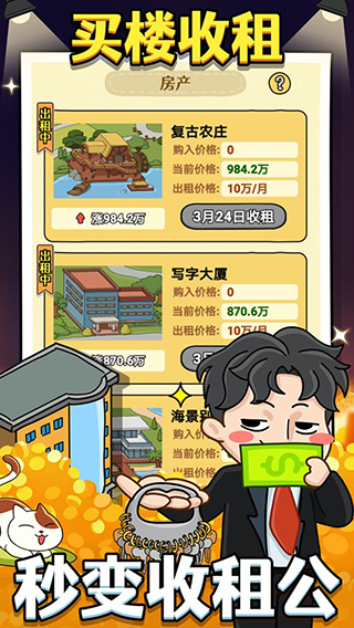 2、各种有趣的商战玩法可以去尝试体验,玩家的财富可以快速的升级起来获取金币。