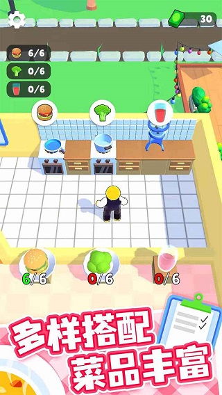 继Steam上的模拟经营《胡闹厨房》爆火以后,不少玩家纷纷入坑,该游戏对于玩家之间的默契考验度非常高,因此这也被成为分手厨房,又名友尽游戏,如果你也被这款游戏的魔鬼规则劝退以后,那不妨试试这款开心厨房游戏,游戏是由国内知名厂商动能无线运营发布,不同于以上介绍的《胡闹厨房》,这款游戏操作更加简单,并且魔性的画风与2.5D视角设计,同样能够为你带来许多欢乐!在游戏中,玩家需要通过接待客人获取游戏货币,然后通过货币解锁更多的菜肴,雇佣员工,升级餐厅的设施、扩建餐厅的面积,开设更多的分店!此外,开心厨房游戏内还有各种升级功能,提升厨师的能力可以快速出餐,提升服务员的能力能够增加服务效率,扩大餐厅的面积和设备,可以吸引到更多的顾客,通过以上简单的放置操作,有机会建立起一个庞大的美食帝国!