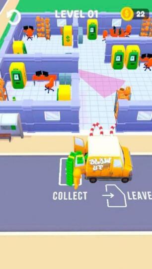 炸毁ATM机是一款非常好玩又有意思的趣味休闲闯关冒险游戏,在游戏中,玩家需要控制自己的角色躲避银行保安的巡逻去炸毁ATM机,游戏里面玩要在灵活躲避保安护卫以及监控的监视,你摧毁的机器越多,就能够获得更高的积分,游戏内容丰富精彩,趣味性十足,欢迎广大玩家进行下载。