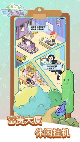 我有一座商业楼最新版是一款以卡通漫画风格为主的模拟店铺经营类游戏,在这款游戏中玩家将会成为一间大楼的房东,并需要从零开始建造装修商业楼,以及根据自己的喜好招募各种类型的商家来获得收益,也可以根据租客的要求为他们推荐适合的门店位置,但是玩家还需要添加更多的家具以及升级家具来增加自己的收益,房间装饰越好获得的收益也越高。总之,在我有一座商业楼游戏中收租是您收益最大的来源,只有这样才能开启更多的商铺,来成为商业街中最大的商场,那么感兴趣的话不妨来下载试试吧!