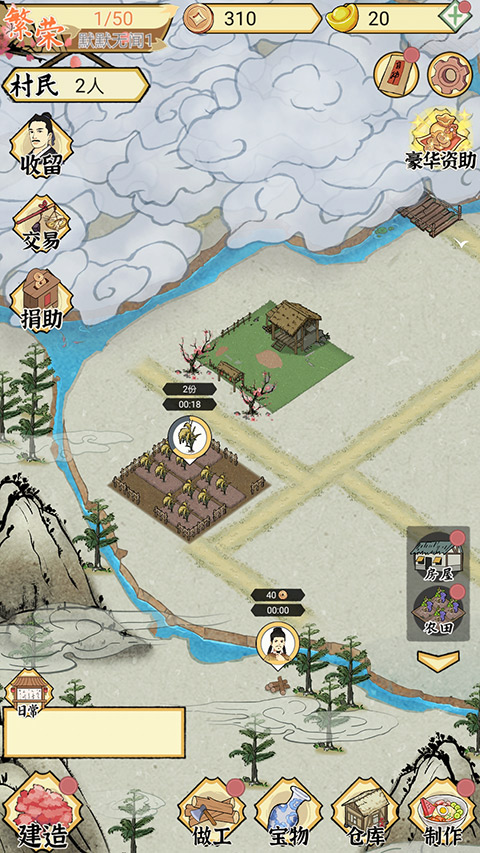 等你解决了大家的温饱问题后,有了充足的精力和资产后,可以把目标放在发展村庄上,比如在城郊建造佛寺、温泉镇等,改善小镇风貌的同时改善大家的生活水平。