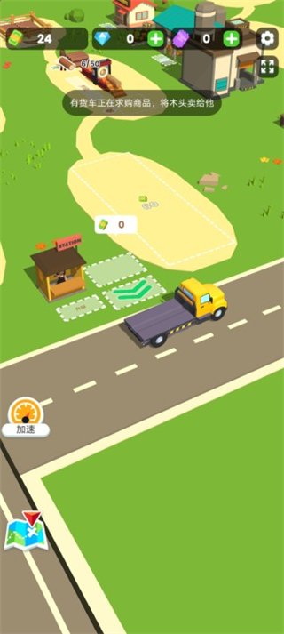 9、有货车在求购商品是,玩家可以将木头都卖给他;