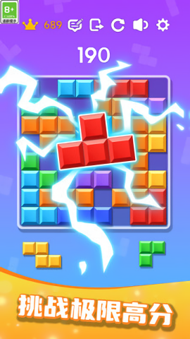 2、极简风格的游戏画面,色彩鲜艳、视觉效果清晰,让玩家专注于方块的排列和消除,享受纯粹的游戏乐趣;