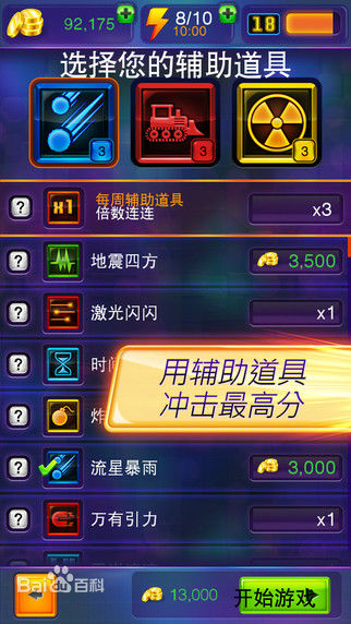 多种辅助道具(如磁铁、激光和时移)引爆您的游戏,让您启动疯狂得分的闪电反应。每周发布一个新辅助道具,战略组合无极限!