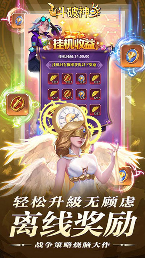斗破神是一款以西方魔幻世界为题材的挂机类角色扮演手游,凭借着独特的角色建模、酷炫的战斗画面,奇妙诡谲的战斗场景,为玩家带来了前所未有的游戏体验。在游戏内不但画风外观设计非常精美之外,其操作也是非常简单且玩法有趣的,玩家可以通过自己的策略来搭配自己喜欢的阵容,也可以通过游戏内赠送的大量福利,来疯狂抽取角色,从而随意的搭配出一套数值爆炸的阵容,所有升级材料更是应有尽有,不需要玩家大量的爆肝和充值,玩家只需要动动小手点击领取即可。