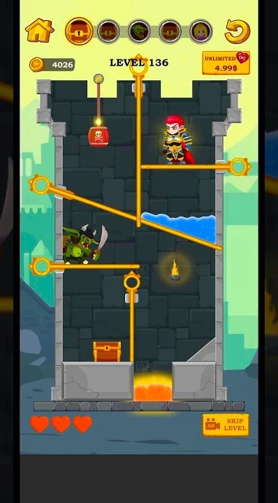 《英雄救援4》一款很不错的益智闯关游戏,在这个游戏中,玩家将成为一个战士,你需要通过经典的拔针方法帮助你的人物脱离危险,而且不要随便点击,否则很快就会摔倒,大量的机械装置使这个地方很危险,如果你不小心,你会有危险的,一旦出人意料的事情发生,你必须重新开始,那就去下载体验吧。