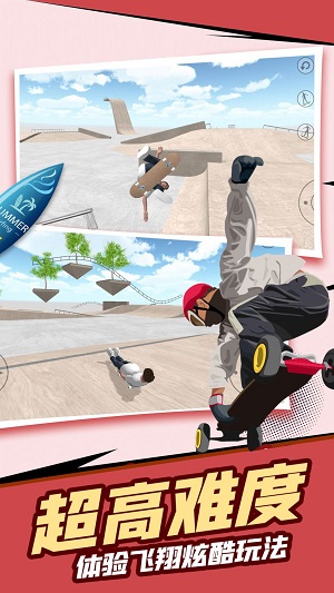 这是一款滑板题材的模拟解压游戏。每一次都可以收获一种耳目一新的体验,踏上你的滑板,你就可以随心所欲,翻转出无数的特技来展示力量,不要小看特技,每一个都需要大量的时间来磨练。