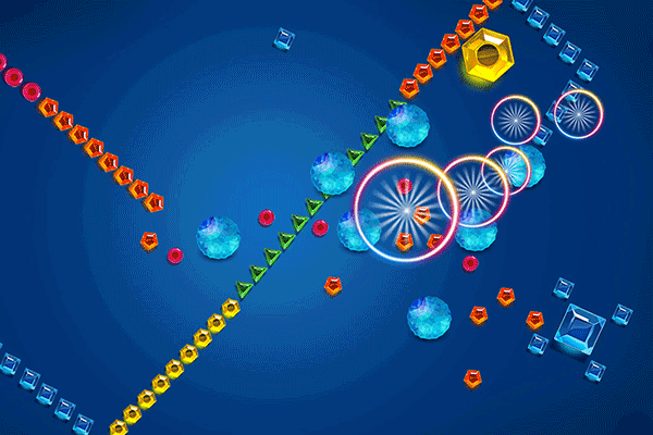 另外,己方的怪物在被弹出后,还可以通过撞击另外的己方怪物来发动其技能,不同种类的怪物有不同种类的触发技能,其攻击方式包括范围爆炸、激光光束以及多方向散弹等等。比起我们过去熟知的某些卡牌手游,游戏提供了更为简单直接和爽快的操作,也成功摒弃了一键自动战斗这种过于“轻度”的游戏体验,在游戏初期,很容易让人沉浸其中。