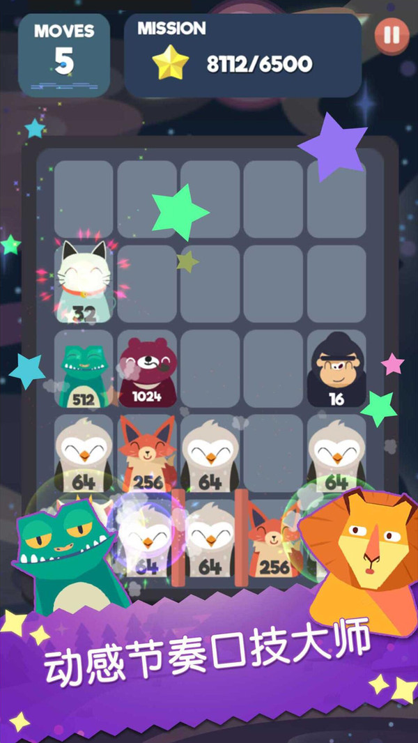 《2048合成大师》游戏是一款合成类手机游戏,游戏有着非常卡通的画风,各种可爱的猫咪,可以通过2048规则来进行合成,让合成游戏更加的有趣!跟着“动”感节拍扭动起来的2048!节奏伴随,在2048的经典模式中连续合成,然后勇闯关卡,在一关关与小动物们快乐的冒险中,完成任务目标,合成2048!