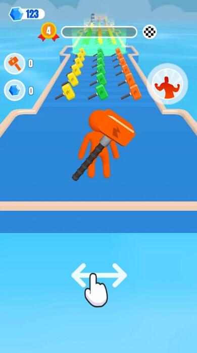 避开不同的障碍物,收集相同颜色的锤子,让它们变大。锤子越大,你可以在关卡结束时用它击中的点越多。这场比赛非常具有挑战性。