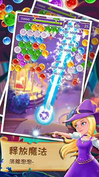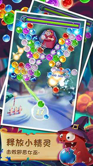 总体来说游戏的玩法并不算是很难,与一般的泡泡龙游戏大同小异,但在游戏画质、辅助线等方面设计上却显得更加的友好美腻,依据辅助线延伸的方向进行射击,同种颜色相触碰即可完美进行消除,释放被封印的小精灵,施展你魔性十足的魔法,让这个世界更加的精彩吧!