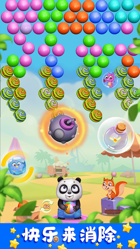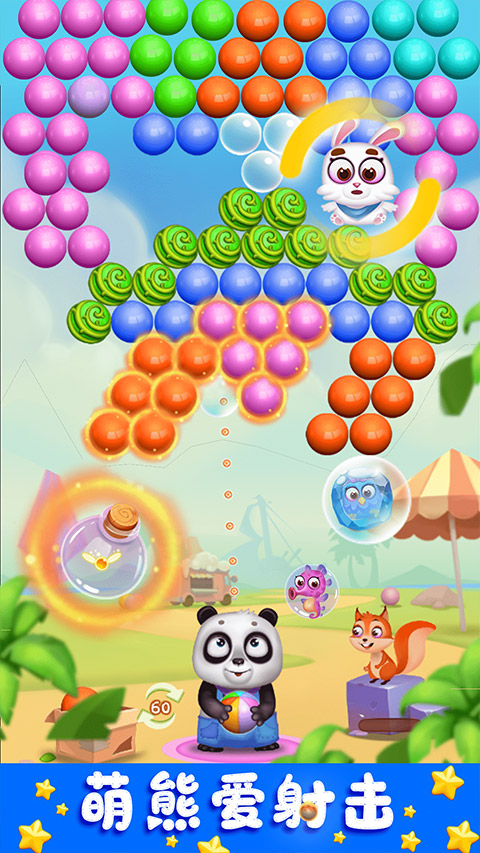 萌熊消消乐游戏app是一款消除闯关游戏,游戏中有可爱的熊猫和兔子,还有各种各样的泡泡和动物,玩家只需在游戏中瞄准、射击和爆破所有的球就能通关赢得奖励。游戏中猎人拥有很强的武器和力量抓住了熊猫的朋友,而玩家的任务是在一个富有挑战性的任务中炸穿每个球,拯救熊猫的朋友。