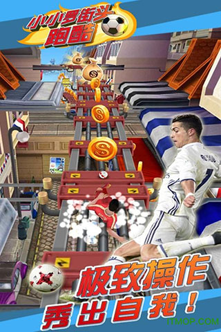 小小罗街头跑酷是一款由c罗代言的经典街头跑酷手游,游戏界面炫酷有型,高清画质配件畅享玩耍,游戏中玩家扮演罗西角色在小巷里踢足球进行跑酷,前方各种阻拦玩家前行的道具和人物实时对您进行攻击,阻碍物将需要玩家的跳跃,攻击,铲地等动作一一躲过,玩家需要根据对方的走位和位置进行适当闪躲,通过玩家灵活的大脑运转和反应速度全力前行获取游戏胜利,玩家跑酷时间越长获取的金币和工具越多,可使用金币购买更多的工具和装备设施,有效提高角色的经验值和战斗值,还可以换取您喜欢的角色,有需求的用户可下载玩耍!