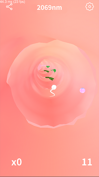 2、上手容易,滑动屏幕控制精子,躲避细菌,到达终点即可