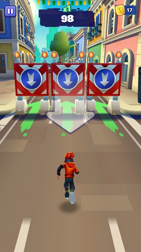 地铁散步正版是一款操作流畅度非常高的无限循环跑酷游戏,游戏画面颜色搭配非常的活泼靓丽,清新色彩迎面而来,在提供不错视觉效果的同时,能让玩家尽情探索城市世界,在街道上、在地铁上甚至在屋顶,花式百变的跑酷场景,有一些可以加速玩家奔跑的道具,通过一次又一次的逃跑、躲避,来提高你的奔跑成绩,随着分数的增长,更多新道具和新玩法将陆续解锁。