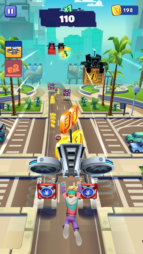 熟悉的操作流程想必大家已然掌握,通过左右滑动屏幕来切换赛道,通过上下滑动实现跳跃和下滑。